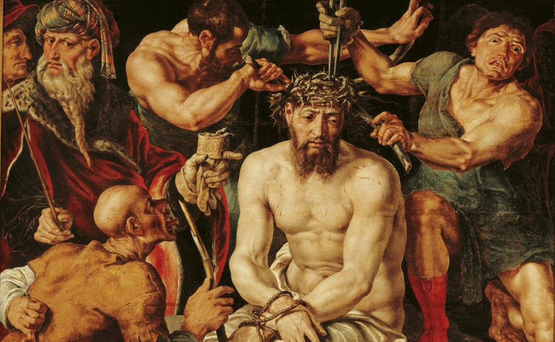 Mat. 27, 27 – 30 . Tedy żołnierze starościni wziąwszy Jezusa do ratusza, zebrali do niego wszystką rotę; a zwłóklszy go, włożyli nań płaszcz szkarłatny; uplótłszy koronę z ciernia, włożyli na głowę jego i trzcinę w prawicę jego; a kłaniając się przed nim naigrawali się go, mówiąc: Bądź pozdrowion królu Żydowski. A plując nań, wzięli … Czytaj dalej Wydrwienie i cierniem ukoronowanie.
