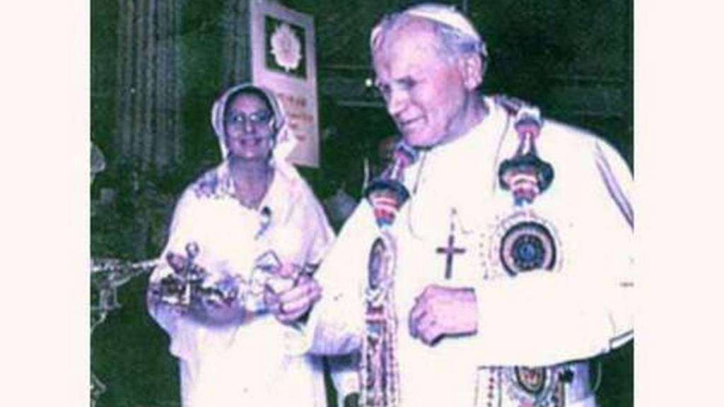 „błogosławieństwo” od hinduski po przybyciu na mszę w New Dehli, Indie (L’Osservatore Romano, 2 lutego 1986)