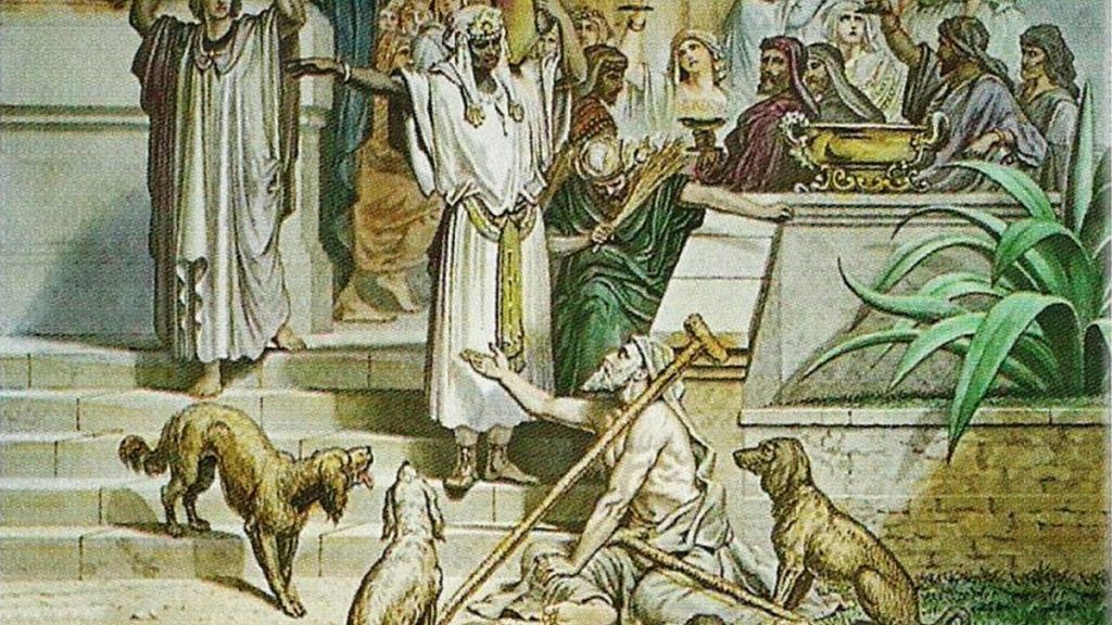 Onego czasu mówił Jezus do faryzeuszów: Był nie który człowiek bogaty, który obłóczył się w purpurę i w bisior, i używał hojnie na każdy dzień. I był nie który żebrak imieniem Łazarz, który leżał u wrót jego pełen wrzodów. Chcąc być nasycon z odrobin, które pa dały ze stołu bogaczowego, a żaden mu nie dawał, ale i psy przychodząc, lizali wrzody jego. I stało się, że umarł żebrak, a poniesion był od Aniołów na łono Abrahamowe. Umarł też i bogacz, i pogrzebion jest w piekle. A podniósłszy oczy swoje gdy był w mękach, ujrzał Abrahama z daleka i Łazarza na łonie Jego. A on wołając, rzekł: Ojcze Abrahamie, zmiłuj się nade mną, a poszlij Łazarza, aby umoczył koniec palca swego w wodzie, aby ochłodził język mój, bo cierpię męki w tym płomieniu. I rzekł mu Abraham : Synu wspomnij, żeś odebrał dobra za żywota twego, a Łazarz także złe; a teraz on ma pociechę, a ty męki cierpisz. A nadto wszystko między nami i wami otchłań wielka jest utwierdzona, aby ci, którzy chcą stąd przejść do was nie mogli, ani stamtąd przejść sam. I rzekł: Proszę cię tedy ojcze, abyś go posłał do domu ojca mego, albowiem mam pięciu braci. Aby im świadectwo wydał, by też oni nie przyszli na to miejsce mąk. I rzekł mu Abraham : Mają Mojżesza i proroki, niechże ich słuchają. A on rzekł: Nie, ojcze Abrahamie, ale gdyby kto z umarłych szedł do nich, będą pokutę czynić. I rzekł mu : Jeśli Mojżesza i proroków nie słuchają, aniby też kto zmartwychwstał, nie uwierzą.