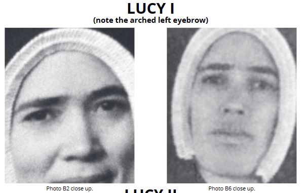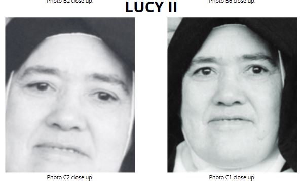 Sister Lucy Truth starała się potwierdzić niektóre z ustaleń wizualnych przedstawionych przez ekspertów, w tym dr Garcii, certyfikowanego chirurga plastycznego, Lois Gibson, eksperta medycyny sądowej i specjalistów od rozpoznawania twarzy. Te wizualne ustalenia obejmowały twierdzenia, że (a) philtrum Łucji I (podstawa nosa do górnej wargi) było dłuższe niż philtrum Łucji II, (b) Łucja II miała szerszy nos, (c) brwi Łucji II są bardziej oddalone od jej oczu niż Łucji I, oraz (d) lewa brew Łucji I jest wygięta w łuk w stosunku do jej prawej brwi, czego nie zaobserwowano u Łucji II. Wszystkie te odkrycia zostały potwierdzone przez staranne pomiary matematyczne.