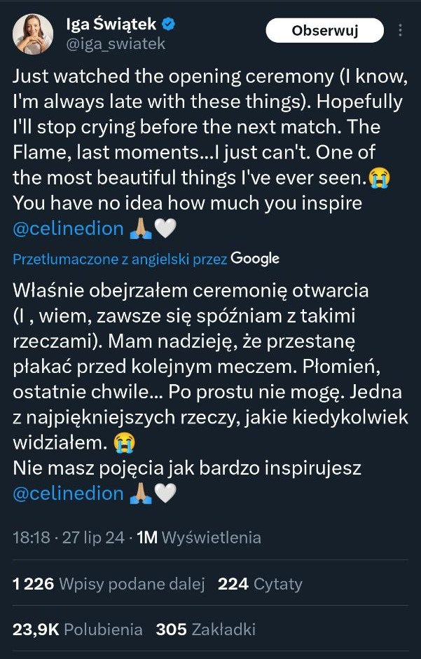 Szambo jakie wypłynęło z Paryża oznacza otwarcie nie igrzysk, ale jawnego kultu szatana. Można pozazdrościć tylko Rosji, a zwłaszcza ich specjalistom od propagandy . Nie muszą nic robić, nawet kłamać. Wystarczy przekazywać to co widać i słychać. Nie wiem czy w historii już wydarzyła się podobna sytuacja. Z tego co mi wiadomo propaganda zawsze opierała się na kłamstwie mniejszym lub większym, ale kłamstwie.